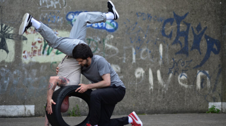 ➔ At the heart of this programme is UP-CLOSE: An energetic dance piece where two strangers meet, connect, and celebrate their new friendship. Together they look to the future with hope, optimism, and an appetite for life. UP-CLOSE is about trusting each other, building resilience together and letting go of the past. Designed for two dancers and a car tyre, blending contemporary, street dance styles with circus skills, peppered with good humour and raw energy UP-CLOSE appeals to the liveness of children and ignites our yearning for physical contact. (25 mins)