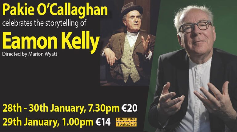Pakie O’Callaghan’s A Celebration of The Stories of Eamon Kelly honours the work of Irelands greatest storyteller. O’Callaghan takes Kelly’s best known stories including “The mirror”, “The looking glass” and “The woman who married the Blacksmith” and intersperses them with the haunting music of Sliabh Luachra, beautifully played by Aileen Collins and Catherine Frost to create an evening of spellbinding theatre. The stories capture the life, times and happenings of rural Ireland in more innocent times and will evoke evoke memories of a world that moved at its own pace dictated only by the weather and the seasons. O’Callaghan has been described by the Sunday Times as “Peerless at what he does”.