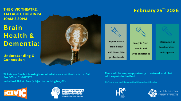 Featuring leading researchers and clinicians from across Ireland, the event will share the latest evidence-based insights in a clear, accessible way and equip attendees with practical actions they can use in everyday life. Local dementia and community services will also be on hand to provide information, advice and resources, making this a valuable opportunity to connect with supports in your area.