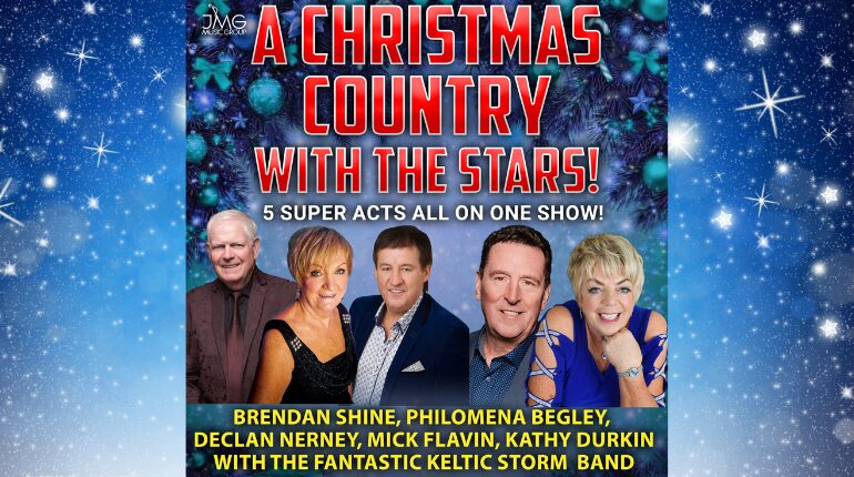 Get into the festive spirit with A Christmas Country with the Stars, a joyful evening of music and entertainment at the Civic Theatre. This special show features five outstanding acts — Brendan Shine, Philomena Begley, Declan Nerney, Mick Flavin and Kathy Durkin — accompanied by the fantastic Keltic Storm Band.