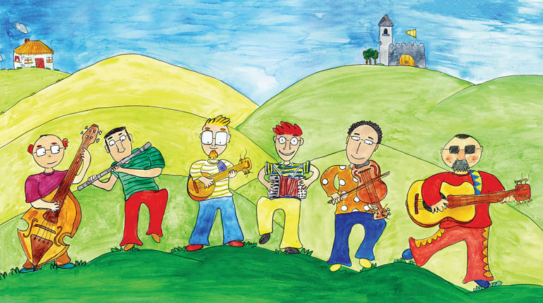 The Speks have won a Parents’ Choice music award in the US where their music has been described as “Riverdance for kids” and they encourage everyone to sing, scream, clap and dance along during their performances. This will be a great, fun event for kids aged 2 to 92! Band members are Tommo on bass and vocals, Ed on guitar and vocals, Rafferty on banjo and vocals, Pete on accordion and vocals, Naymon on fiddle and vocals, and Quince on flute and vocals. Illustrations by David Fortune.